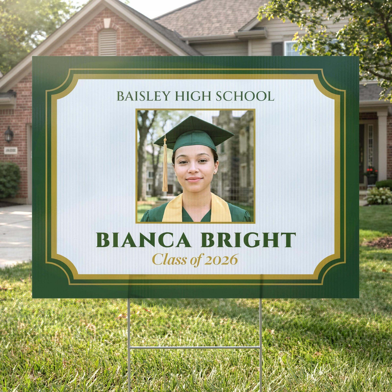 Custom graduation yard signs designed to spotlight your senior and celebrate their achievement.