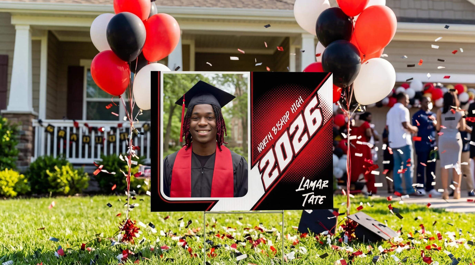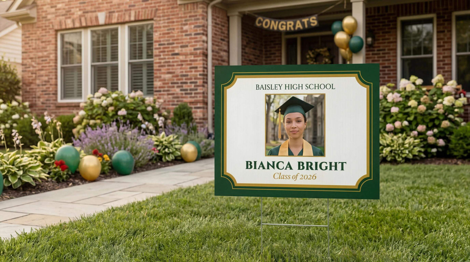 Custom graduation yard signs designed to spotlight your senior and celebrate their achievement.